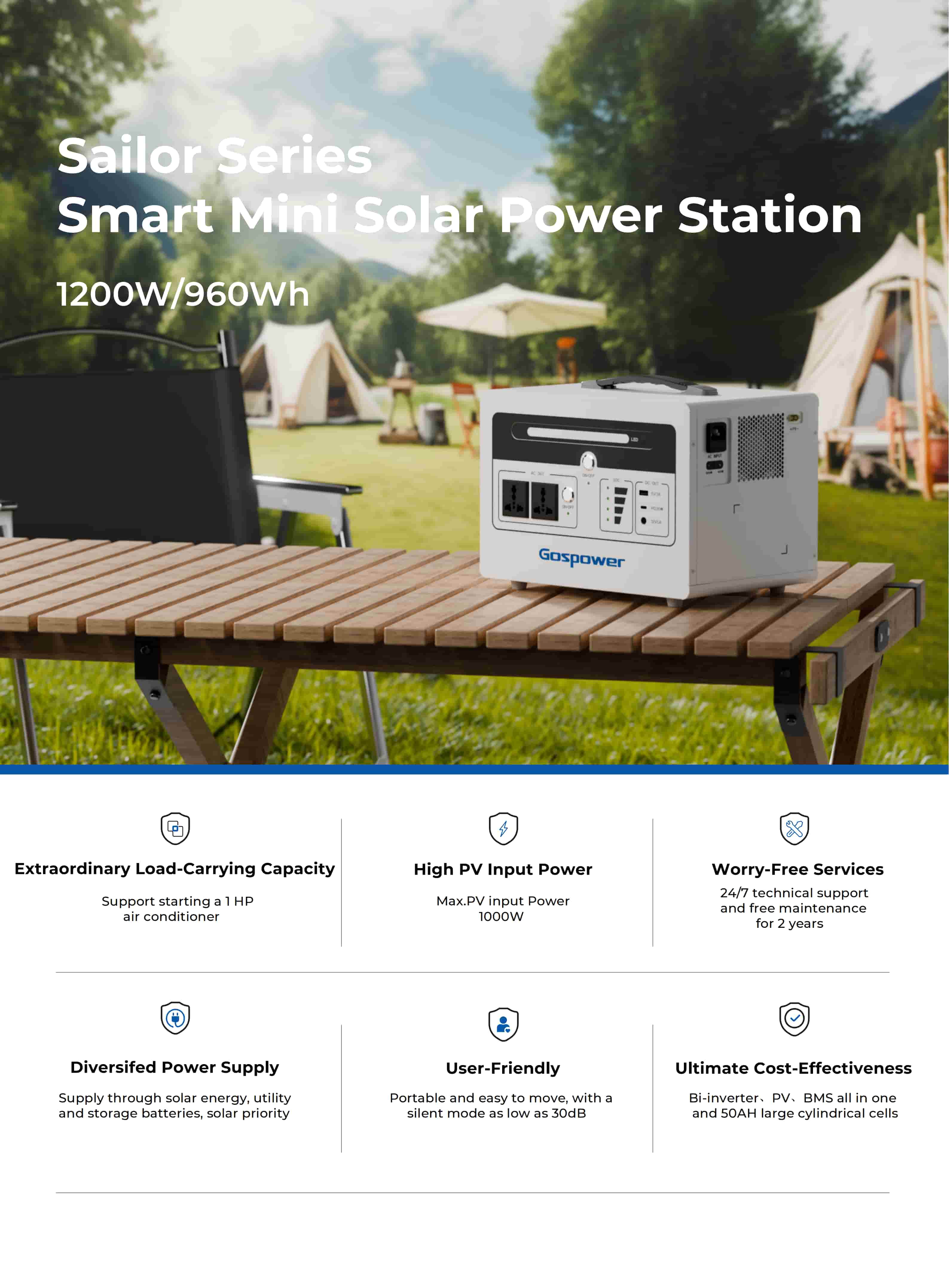 1200W/960WhSailor Series Smart Mini Solar Power Station 1200W/960Wh